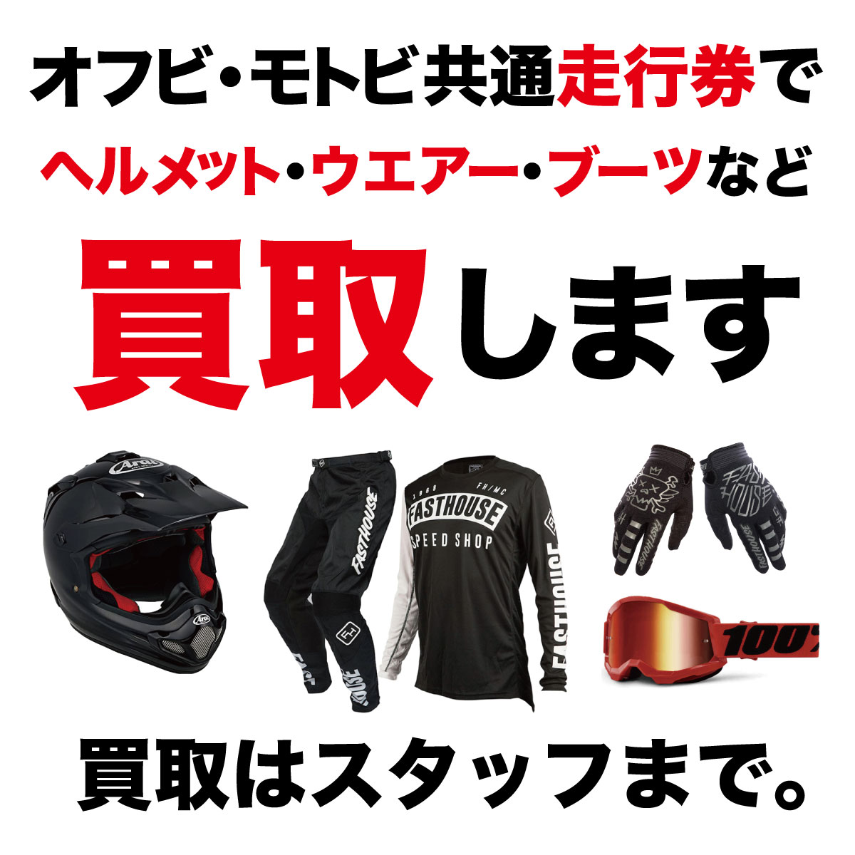 オフビ・モトビ共通「走行券」でウエアー買取させていただきます。